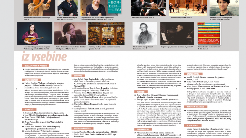 Iz tiskane številke (izid: 30. marec 2021) V tem pomladnem mesecu beležimo leto dni od izvedbe zadnjega koncerta, ki niti v najtemnejših sanjah ni dajal slutiti razsežnosti pandemičnega mrka živih doživetij. Leto težkih preizkušenj, s katerimi se spoprijema celotna družba, je še močneje...