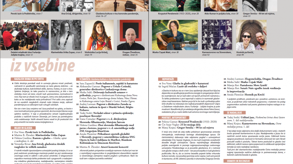 Iz tiskane izdaje (izid: 26. junij 2020) Zapisi za tokratno številko revije so nastajali v času utišanja živega kulturnega dogajanja in ob temnih slutnjah, kaj bo glasbi in glasbenikom prinesla »nova normalnost«. Z zapovedano tišino, na trenutke prav zloveščo, je to obdobje vabilo k...