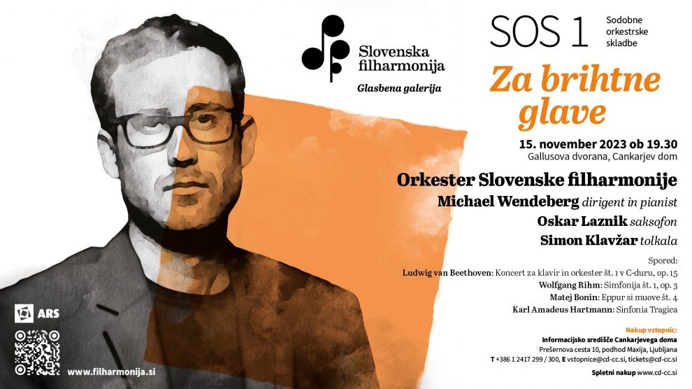 14. novembra 2023 V sredo, 15. novembra 2023, se bo s pričetkom ob 19.30 v Gallusovi dvorani Cankarjevega doma odvil prvi koncert cikla Sodobnih orkestrskih skladb z naslovom Za brihtne glave. Z Orkestrom Slovenske filharmonije bo kot dirigent in pianist nastopil Michael Wendeberg...