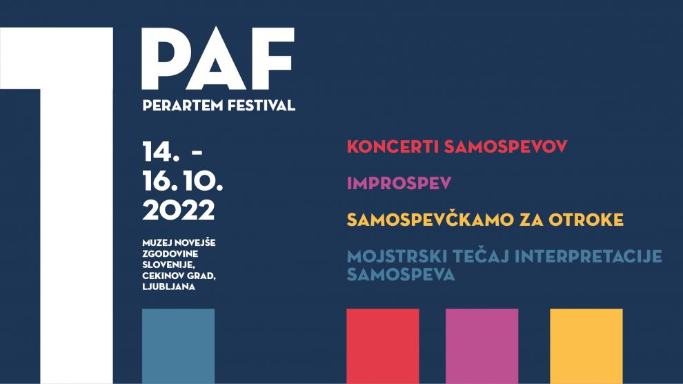 12. oktober 2022 14. – 16. oktober 2022 v Muzeju novejše zgodovine Slovenije, Cekinov grad, Ljubljana Kulturno umetniški zavod PerArtem, ki se je v preteklosti že izkazal s koncertnim ciklom Samospevanje v Slovenski filharmoniji in SNG Maribor, med 14. in 16. oktobrom prireja 1. PAF –...