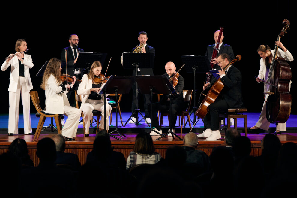 Koncertni večer, ki ga je oblikoval Ensemble Minui v sestavi Anna Morgoulets in Polina Winkler na violini, domačin Nejc Mikolič na violi, Wilhelm Pflegerl na violončelu, Anna Gruchmann na kontrabasu, Sieglinde Größinger na flavti, Stefan Potzmann na klarinetu, Wolfgang Lücking na francoskem rogu in Clemens Böhm na fagotu, je stkal prefinjen dialog med tradicijo dunajske salonske glasbe, poznoromantično izpovednostjo in sodobnimi zvočnimi idiomi. Avstrijsko zasedbo, ki jo sestavljajo vrhunski glasbeniki z dolgoletnimi izkušnjami na področju komorne in orkestrske igre, zaznamuje poseben občutek za ravnovesje med kolektivno homogenostjo in individualno izraznostjo – med orkestrsko širino in gibkostjo komorne izvedbe.