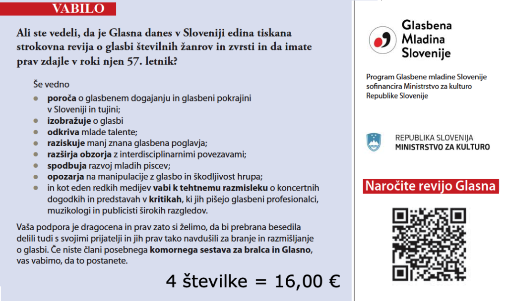 Revija Glasna izide štirikrat letno, naročnina je simboličnih 16,00 evrov.